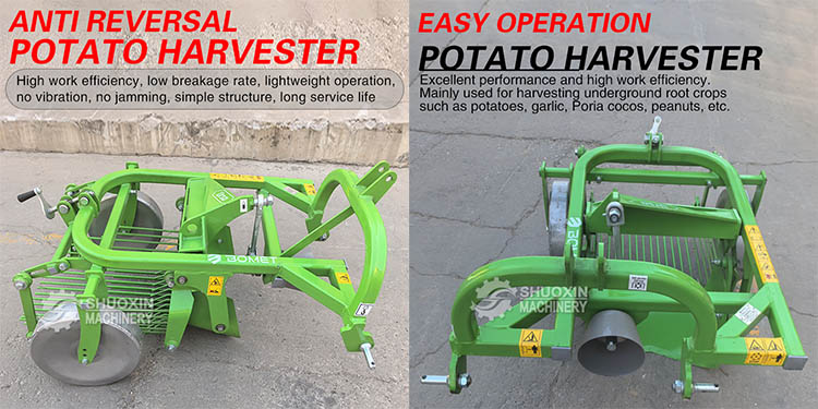 एकीकृत खन्ने उपकरणले गहिराइ खन्ने सटीकता सुनिश्चित गर्दछ, जबकि फ्लोटिंग कटर प्रभावकारी रूपमा झार काट्न र उत्खनन प्रतिरोध कम गर्न डिजाइन गरिएको हो। यो साना ट्रयाक्टरहरूको लागि धेरै उपयुक्त छ र बिस्तारै माटोबाट आलु निकाल्न सक्छ क्षति बिना। यो विशेष गरी साना किसानहरूको लागि उपयुक्त छ।